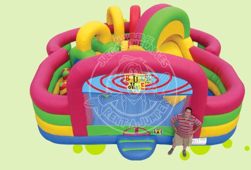 Un juego ideal para chicos de 3 a 12 años, es muy colorido, con varios obstáculos, escalador en su parte de atrás y tobogán. Cuenta con otra entrada que te da acceso a un túnel con más obstáculos.