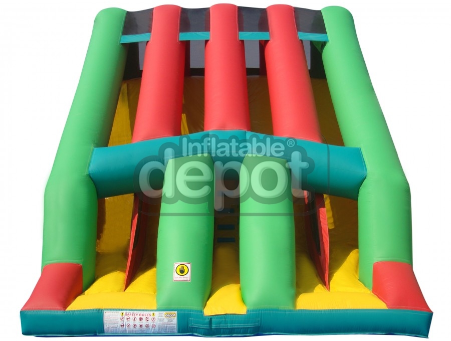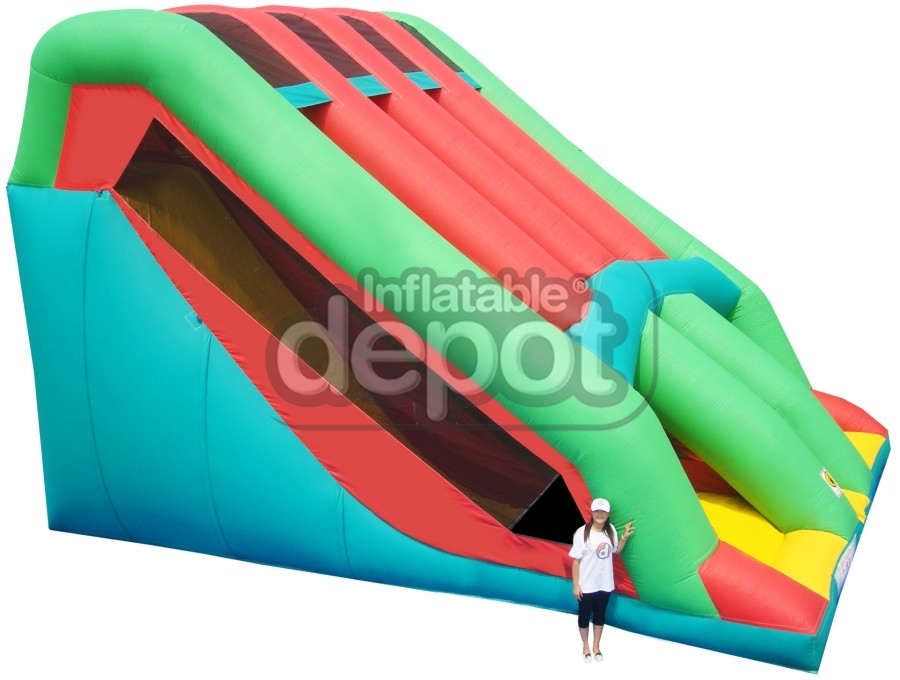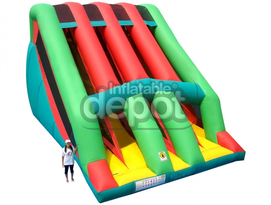 The Inflatable depot Multilane Slide features a compact design with a center front entrance with multiple four-lane exit slides by means of a radically steep pitch that offers an exciting, fast, and safe ride for all. Visually, this modern-shaped slide offers a uniquely slick design with high sight lines for the attendant and huge thrills for all. Be the first to offer the revolution in slides for all markets!