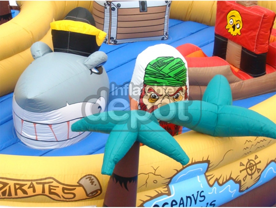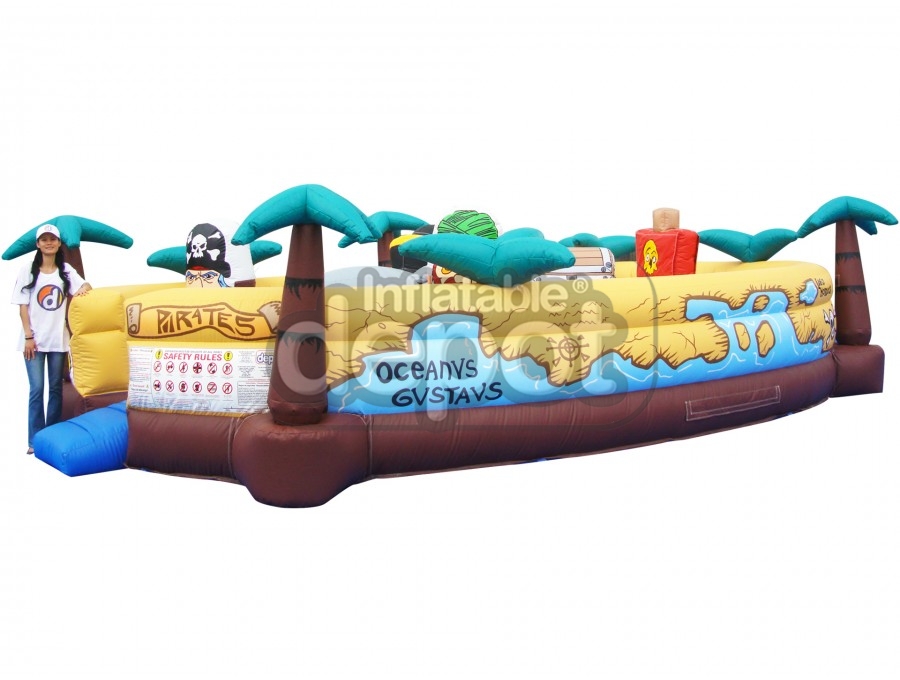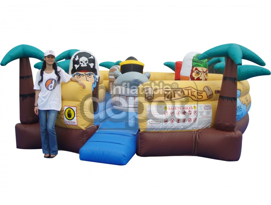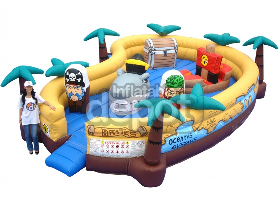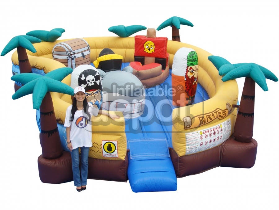 Ahoy Baby Buccaneers! Your ship has made port and ready to set sail. Come on board and sail the seven seas of adventure. This fantastic game is part of the Inflatable Depot Baby Collection, which is a new concept in the industry. The Baby Collection allowed our clients to capture a market segment that nobody was paying attention to. In these units parents can play along with their toddlers in a safe and colorful game. The concept is available in five other cute variations that will appeal to everyone: #121 Baby Magic Land, #122 Baby Auto Race, #124 Baby Stock Cars, #120 Baby Dino Lake, and #126 Baby Cosmic Station.